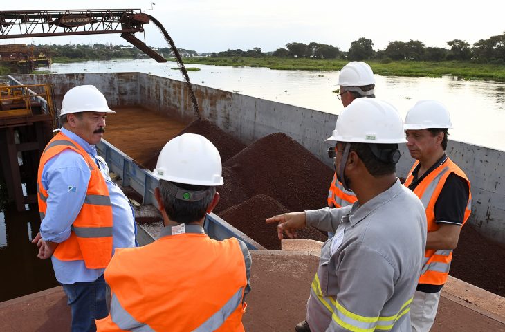 O secretário-executivo do Programa MS Mineral, da Semagro, Eduardo Pereira, esteve em Ladário em visita ao sistema operacional e aos embarques do minério, acompanhado pelo executivo da MPP, Patrick Panero, engenheiro de mina, Antônio Landi, e pelo consultor e geólogo Alexandre Scheid.