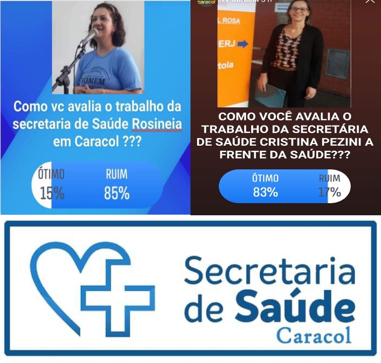 Através de enquete feita pela página TV CARACOL, podemos observar que hoje a saúde respira bons ares, e a nova gestão está sendo bem conduzida com a atual secretária Dra Cristina Pezzine, que em avaliação obteve 83% de aprovação e apenas 17% de rejeição.