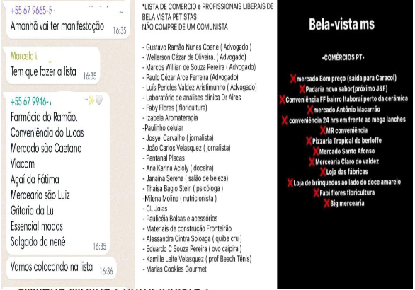 Até o momento, a informações que isso vem acontecendo em caracol e Bela vista , circula nas redes sociais listas que não têm somente estabelecimentos, inserindo também pessoas que se opuseram ao Presidente Jair Bolsonaro (PL).