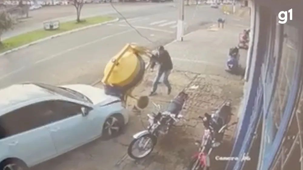 Em um vídeo registrado pelas câmeras de segurança, é possível ver o homem empurrando a betoneira, objeto utilizado para misturar cimento em obras, e o carro invadindo a calçada. O veículo descontrolado atinge primeiro o objeto e depois a vítima.