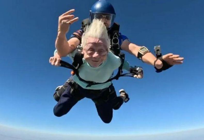 Dorothy Hoffner, de 104 anos, tornou-se a pessoa mais velha do mundo a pular de paraquedas. O salto da norte-americana foi registrado pela agência de paraquedismo Skydive Chicago no último domingo (1.out), quatro anos após a idosa realizar a primeira experiência do esporte radical - quando havia completado 100 anos.