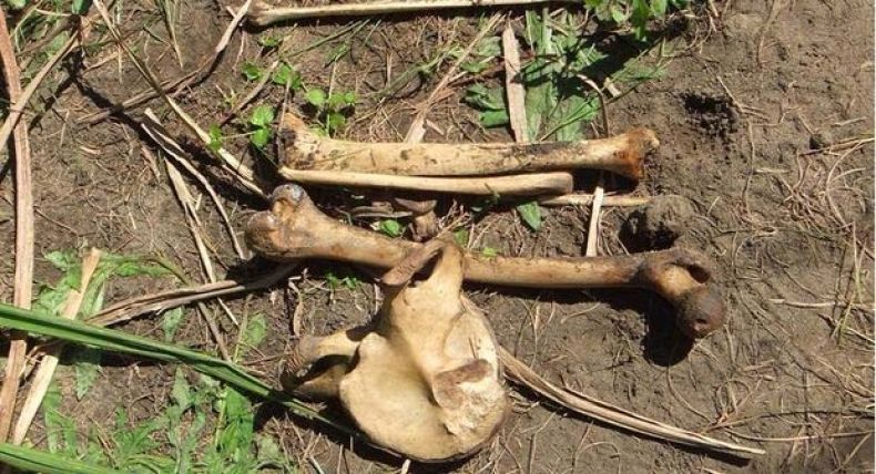 Conforme o registro, foi encontrado um crânio e diversos ossos espalhados misturados na terra. Havia também uma mochila e roupas em estado de decomposição.