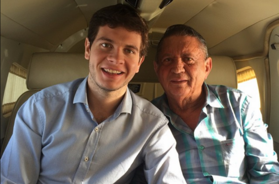 Lelinho posa em jatinho junto ao avô, Nilton Rocha Filho, autuado por desmatamento em 2000. (Foto: Reprodução/Instagram)