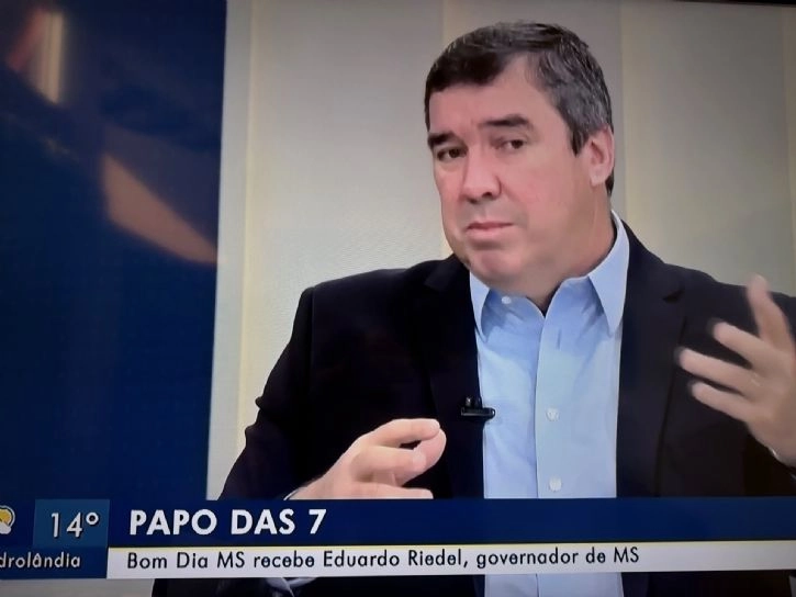 Em entrevista ao programa Bom Dia MS no quadro Papo das Sete, da TV Morena, o governador Eduardo Riedel (PP), na manhã desta quinta-feira, 21, abordou uma série de temas que vão da economia e política às exportações e segurança pública em Mato Grosso do Sul.