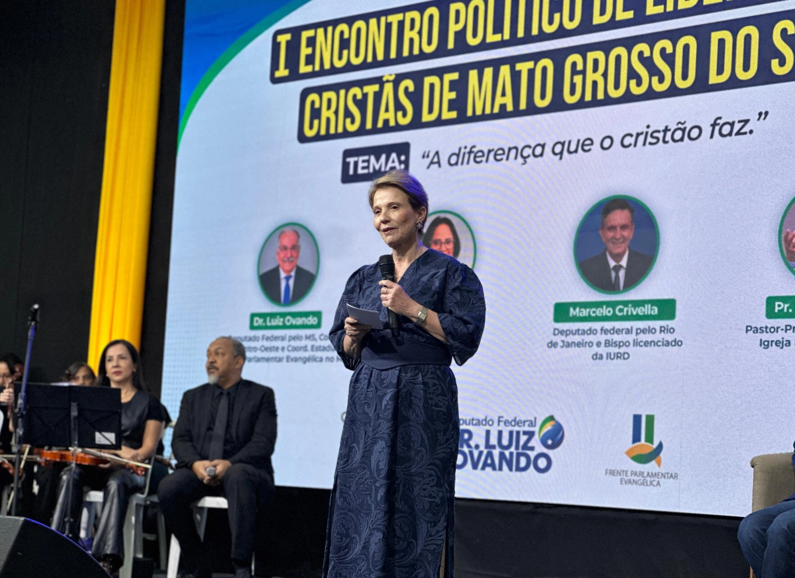 A senadora Tereza Cristina (PP) discursou na noite desta sexta-feira (12) durante o 1º Encontro Político de Lideranças Cristãs de Mato Grosso do Sul, um evento com o tema “A diferença que o cristão faz”, promovido na Terceira Igreja Batista de Campo Grande.