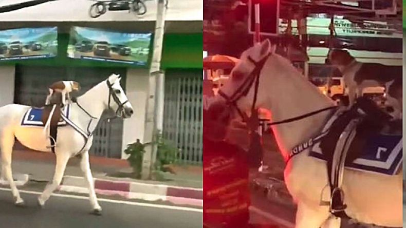 Não é possível! Cachorro é visto passeando em cima de cavalo pelas ru...