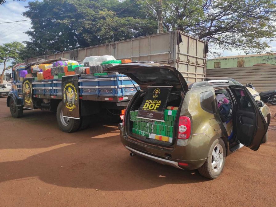 Na carroceria do caminhão foram encontrados 10,02 toneladas de maconha e na Duster 1,1 tonelada do entorpecente.