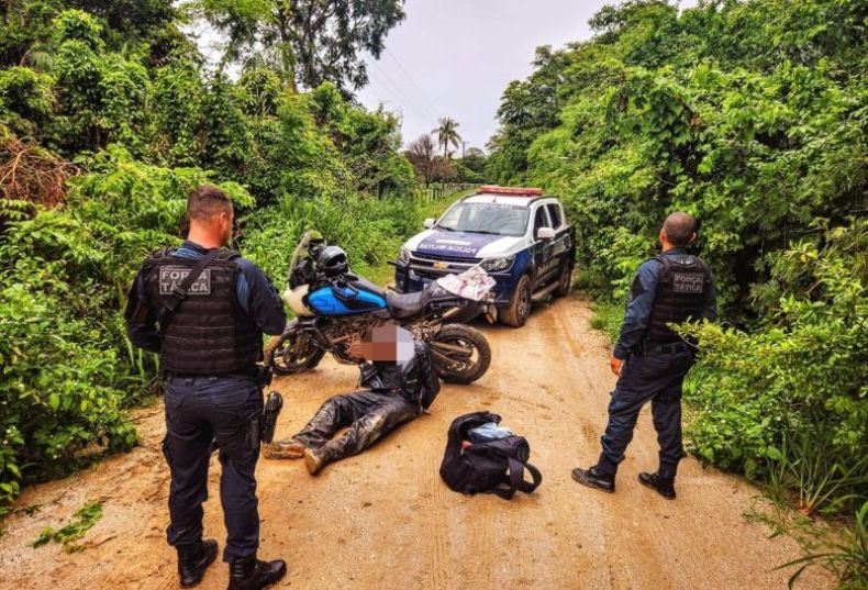 Na tarde deste sábado (14), a equipe da Força Tática da Polícia Militar recebeu a informação de que uma moto Big Trail, cor azul e sem placa, havia entrado na Estrada de acesso ao lixão, acompanhada por um veículo carro Gran Siena prata, em Corumbá (MS).