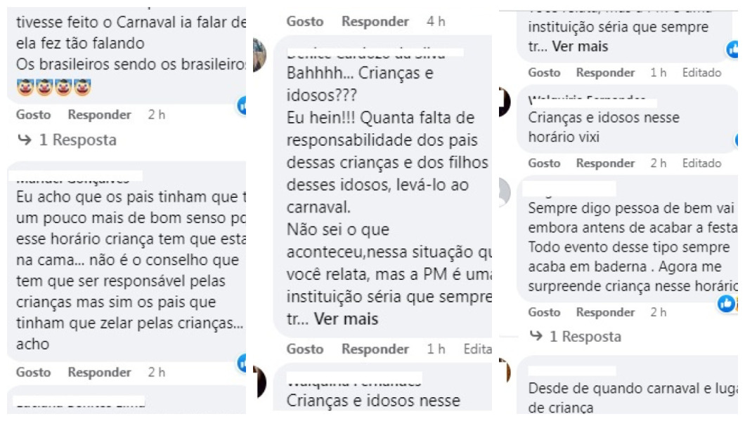 No post, houve várias reações. A maioria dos internautas questionou a denunciante sobre idosos e crianças nas ruas de Jardim, até tarde da noite e aprovou a atitude descrita por ela, condenando pais que levam os filhos no evento.