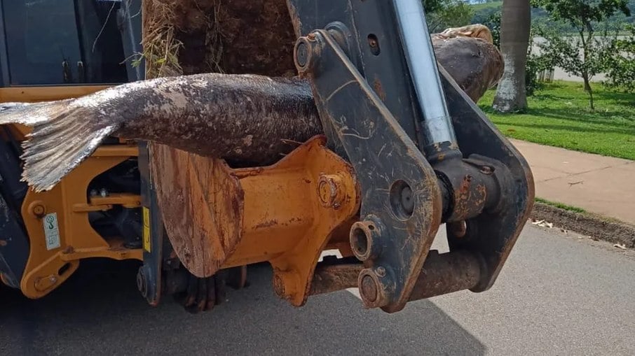 Uma carpa gigante foi retirada com a ajuda de uma retroescavadeira da Represa Eduíno Sbardelline em Vargem Grande do Sul , no interior de São Paulo , na última quarta (8). Segundo a prefeitura da cidade que divulgou o fato apenas nesta quinta-feira (9), o peixe pesava cerca 65 quilos e media aproximadamente 1,10 metro de comprimento.