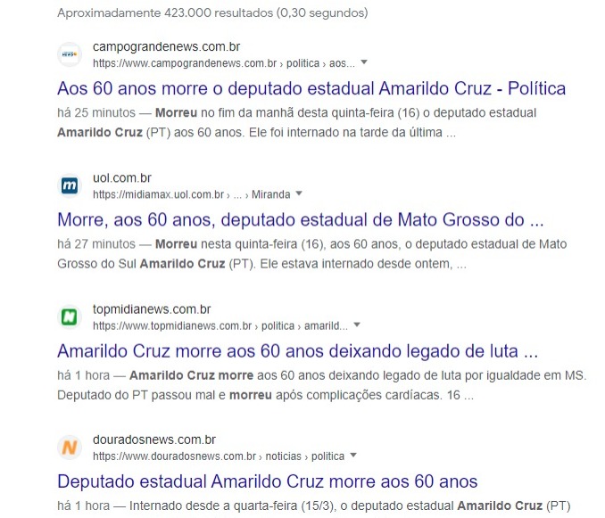 Vários sites de notícia de Campo Grande e do interior chegaram a informar a morte, inclusive o DESTAK.MS.