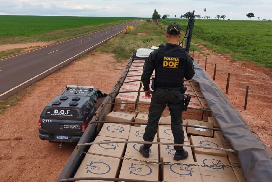 A apreensão de Nova Andradina, foi realizada quando os policiais faziam um bloqueio na região conhecida como “Linha do Angico” e abordaram um motorista que conduzia uma carreta. O condutor confessou aos agentes que o veículo estava carregado com cigarros do Paraguai.