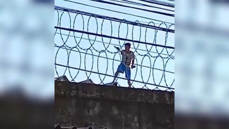 A imagem rapidamente foi gravada por quem aguardava o horário de visitas e viralizou. O tumulto começou logo após o ‘confere’, momento em que o preso consegui acessar o telhado para fazer seu protesto.