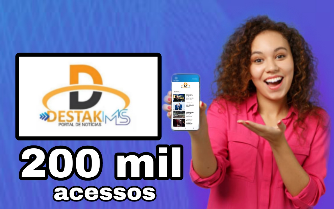 O Portal de notícias SITE DESTAKMS chegou a marca de 200 mil acessos na redes, com uma política de transparência e imparcialidade o Site se destaca por sua credibilidade em apurar os fatos antes de notícia las nas redes .