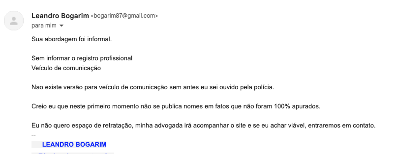 Após tetativa por telefone e whats, recebemos um e-mail onde o acusado “dispensou seu direito de resposta”