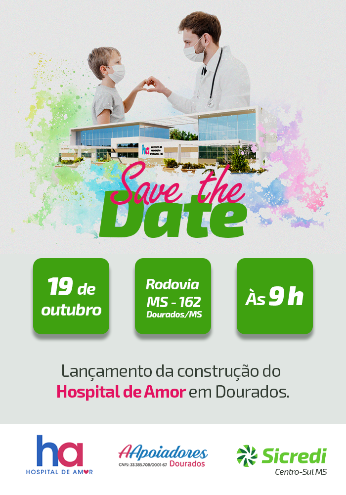 No Dia Internacional das Cooperativas de Crédito, comemorado na terceira quinta-feira do mês de outubro, a Sicredi Centro-Sul MS – instituição financeira cooperativa – lançará oficialmente a construção do Hospital de Amor em Dourados que atenderá, gratuitamente, pacientes com câncer. Os investimentos são de R$ 8 milhões, aprovados pelos associados em assembleia, para a primeira estrutura no município. O lançamento da obra acontecerá no dia 19 de outubro, às 9h, na Rodovia MS 162.