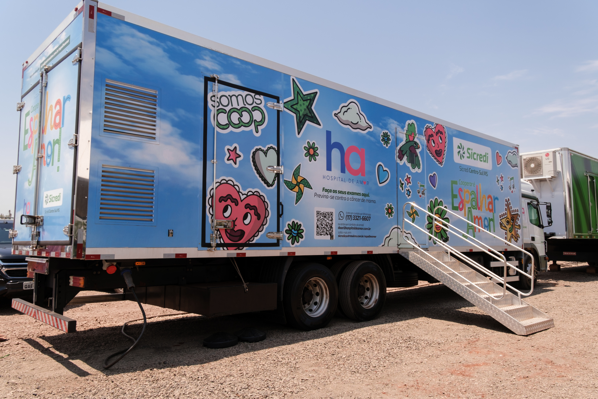 Carreta é adaptada para realização de exames preventivos de rastreamento do câncer de mama e do colo de útero e recebe apoio da Sicredi Centro-Sul MS