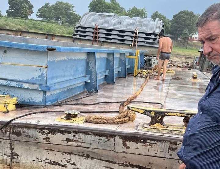 Populares e funcionários da barcaça auxiliaram o ex-prefeito e em seguida conseguiram retirar a lancha do rio.