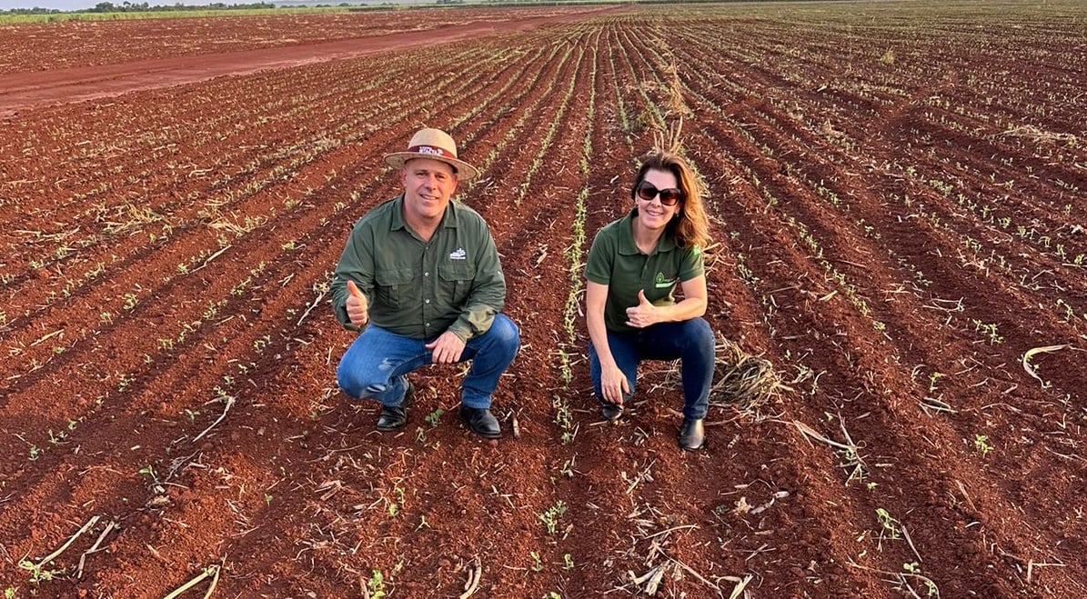 Ela explica que, atualmente, foram realizadas coberturas com crotalária e brachiaria na propriedade e há expectativas de que essa mistura melhore a fertilidade do solo e, consequentemente, a produção da próxima safra de soja. A equipe está atenta e acompanha de perto os resultados ao longo da temporada, com o compromisso de garantir a produtividade e a saúde do solo.