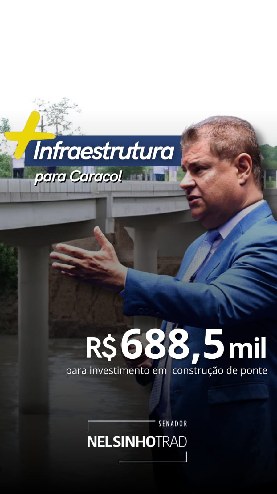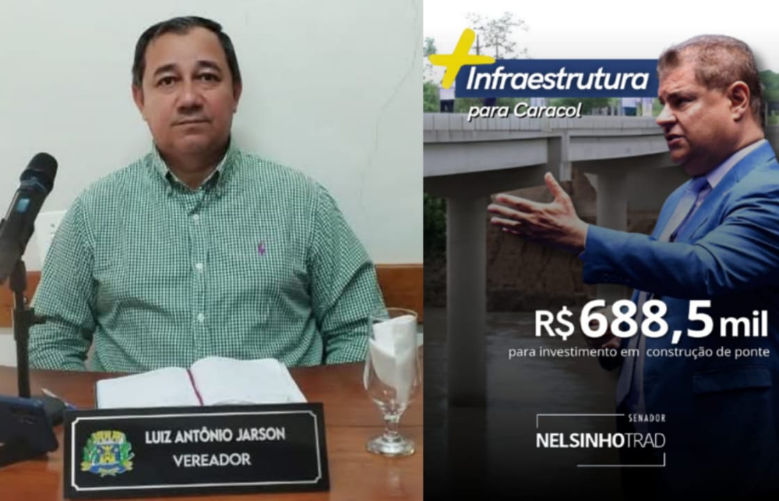 Ao todo são R$ 688,5 mil reais em recursos para investimentos em construção de ponte , uma parceria do Senador Nelsinho Trad e o vereador Luiz Jarson .