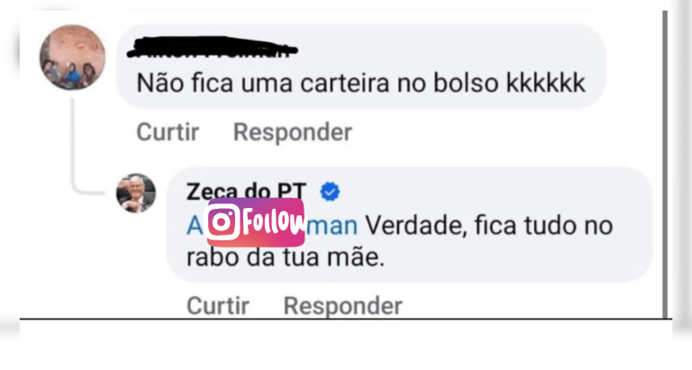 O deputado chegou a discutir com um internauta que lhe provocou em uma postagem. O internauta comentou em uma foto, dizendo que não ficaria uma carteira no bolso. Zeca não ficou quieto e disse que a carteira estaria no rabo da mãe do internauta.