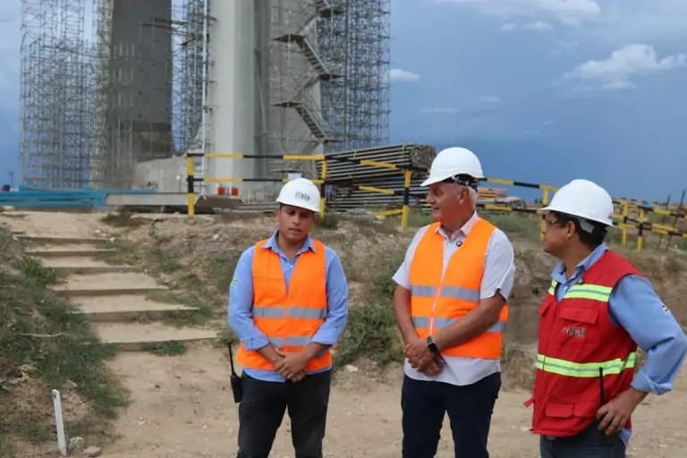 Durante a visita, o prefeito esteve acompanhado da funcionária Daniela Ovelar e conversou com os engenheiros Douglas Oliveira Pereira e Kelvin Emanuel Larrea Miranda, responsáveis pela obra. No local, ele observou o estágio atual da construção, que segue para a fase de estaiamento e lançamento dos cabos, um passo crucial para a conclusão da estrutura.