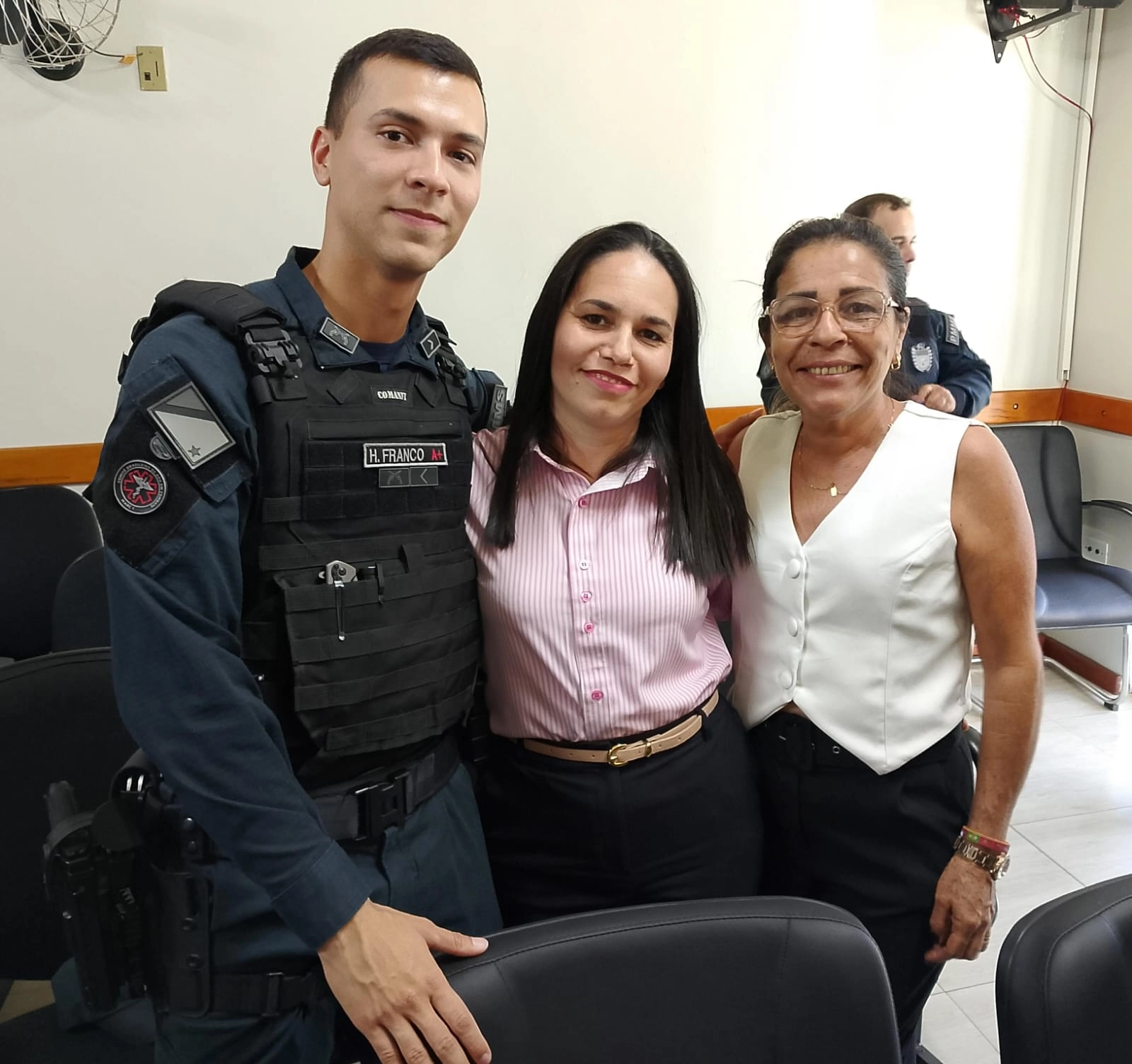 Os novos integrantes da força Policial são a SD PM D. Souza, a SD PM Rafaely e o SD PM H. Franco.