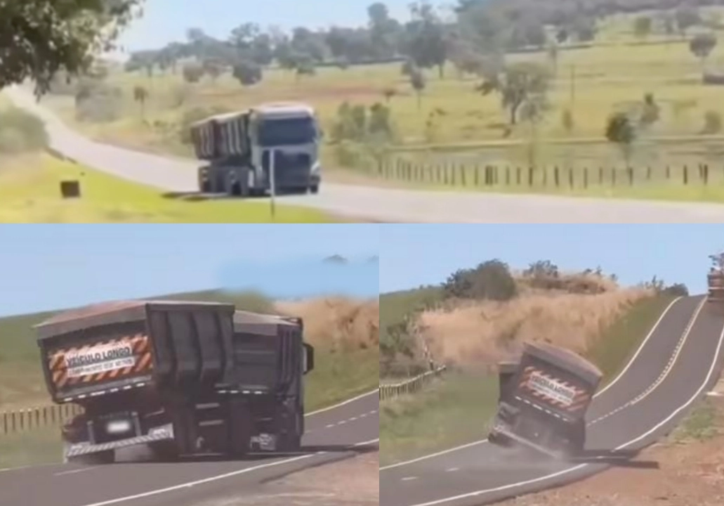 A manobra consiste em balançar a carroceria do caminhão de um lado para o outro e tirar as rodas da pista, a fim de contorcer todo o veículo.