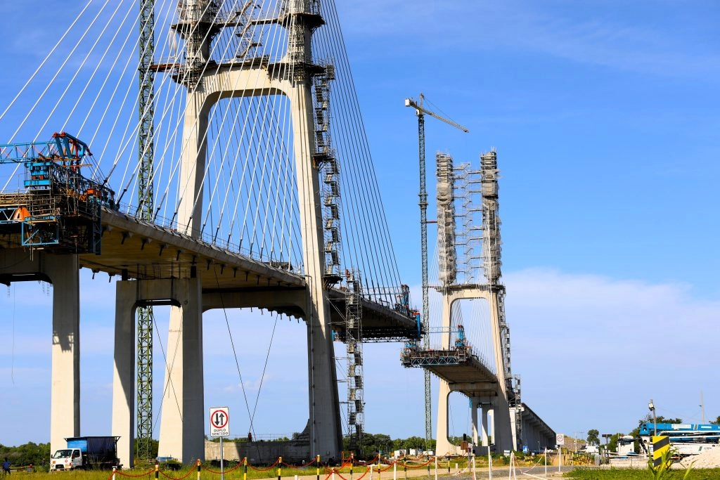Obra icônica para a economia sul-americana, a Ponte Internacional da Rota Bioceânica, que vai ligar o município sul-mato-grossense de Porto Murtinho a Carmelo Peralta, no Paraguai, chega à etapa final da estrutura de ligação entre os dois países. Com 1.294 metros de extensão e 21 metros de largura, faltam cerca de 101 metros para o fechamento total da ponte. A aduela de fechamento – nome técnico que une as estruturas, mas popularmente chamado de “beijo” das aduelas – está prevista para ser concluída no final de maio, segundo informações dos responsáveis pela construção. O estágio atual da construção emprega, diretamente, hoje em torno de 280 trabalhadores, entre brasileiros e paraguaios.