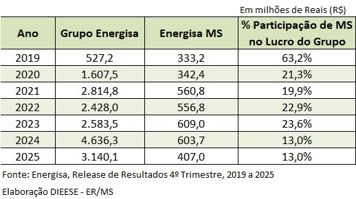 Nestes anos de Energisa MS, em que a conta de luz dos consumidores passou a pesar muito mais no bolso, a empresa teve lucro bilionário. Levantamento do Dieese mostra que entre 2019 e 2025, a Energisa Mato Grosso do Sul acumula lucro de R$ 3,4 bilhões.