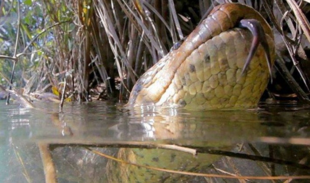 Fotógrafo fica cara a cara com sucuri gigante durante mergulho no Mat...